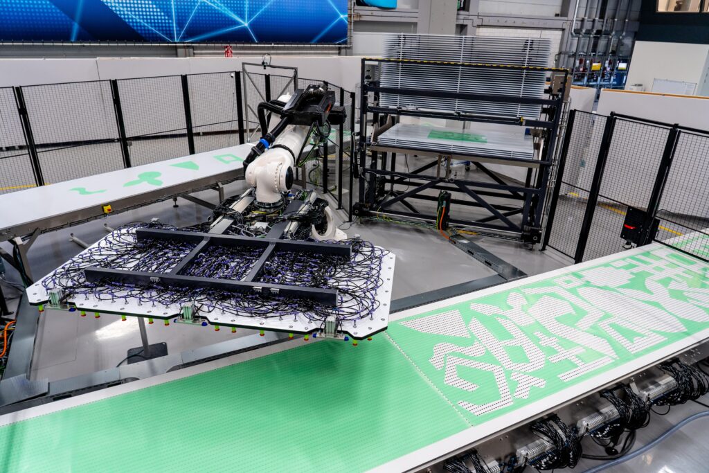 Automated Kitting takes care of three steps: offloading (taking plies from the cutter), sorting (placing the plies into the right kit) and sequencing (ensuring all plies are in the order of laminating). It can handle prepreg, dry fibre or thermoplastic composite materials. Storage is in the Airborne dynamic buffer system, which is compact, fast and is accessible both for the robot and the human operator.